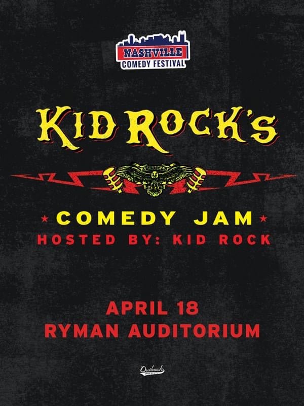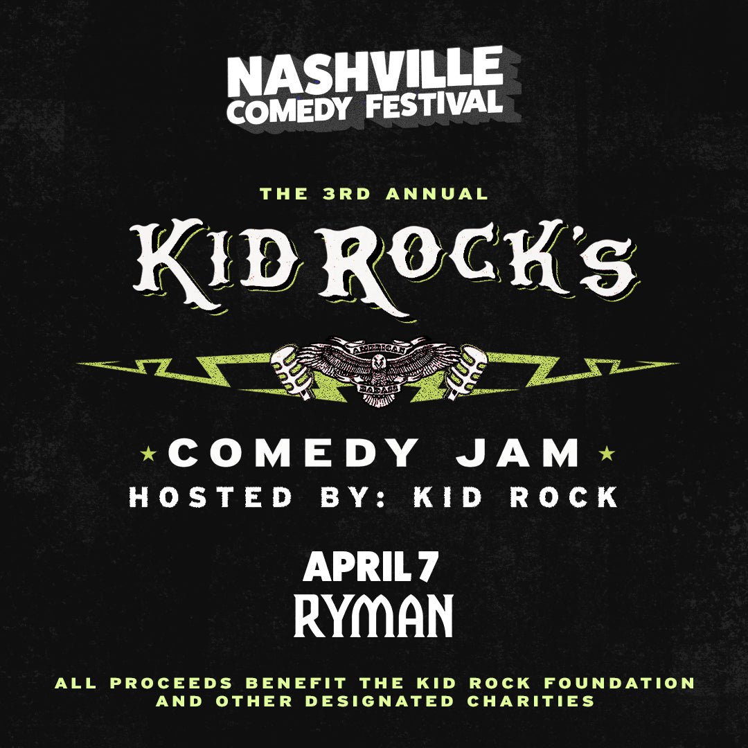 3rd annual Kid Rock’s Comedy Jam returns to the historic Ryman Auditorium April 7, 2025 during the 2025 Nashville Comedy Festival.