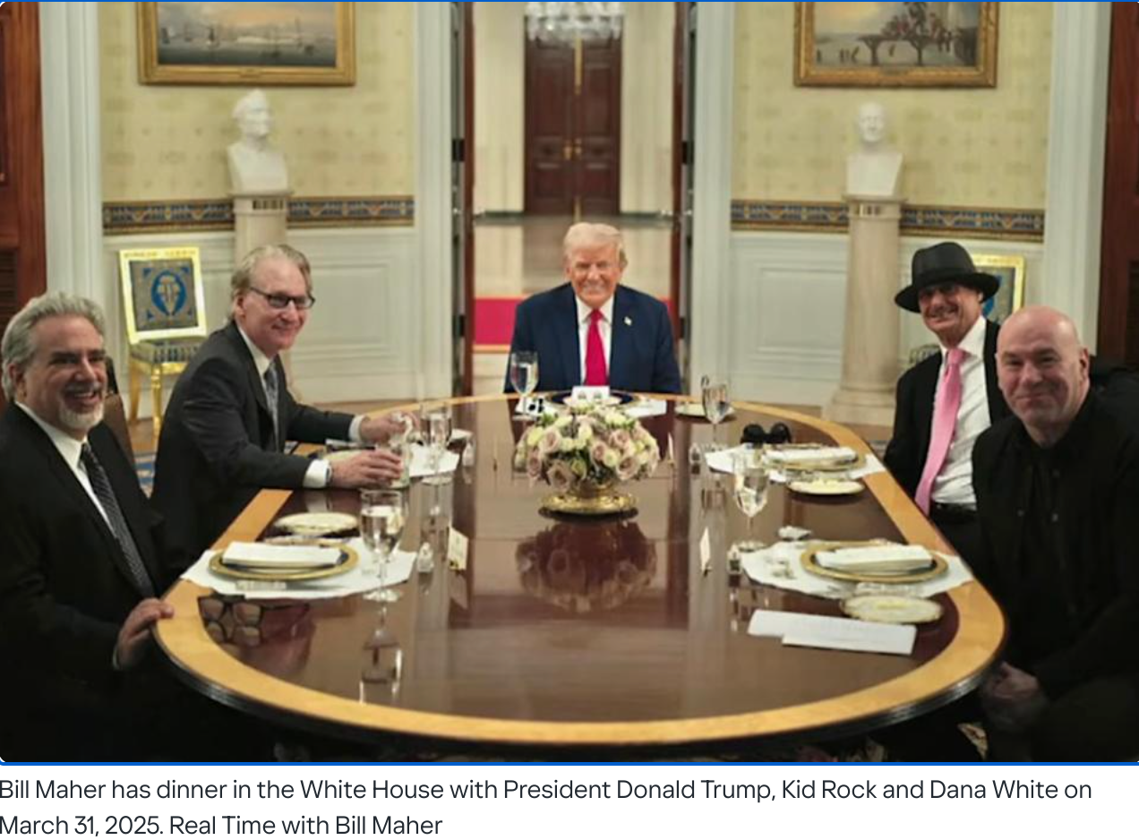Bill Maher shares the details of his recent meeting with President Trump, Kid Rock, and Dana White at the White House.