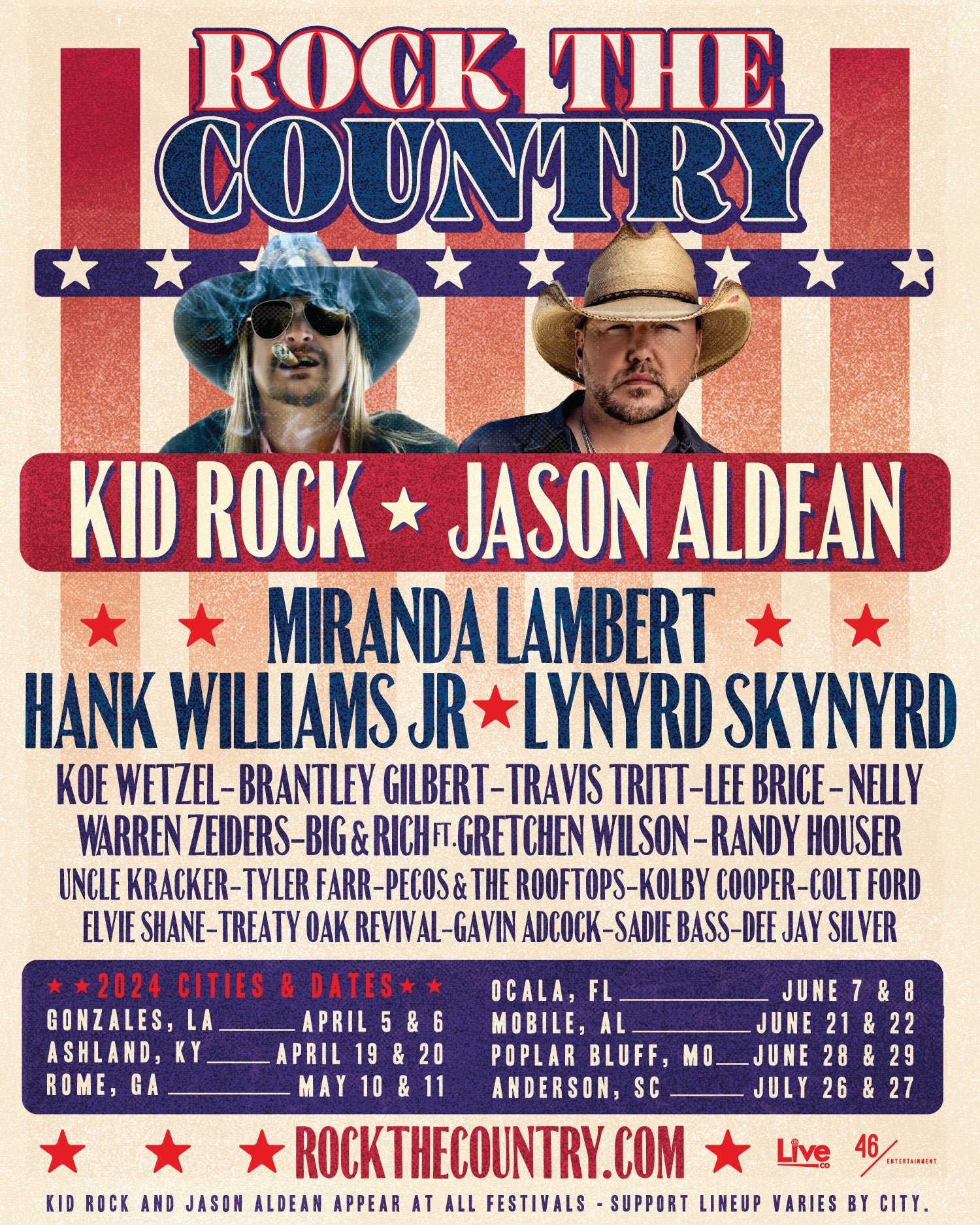 Jason Aldean and Kid Rock Headlining ALL Shows!