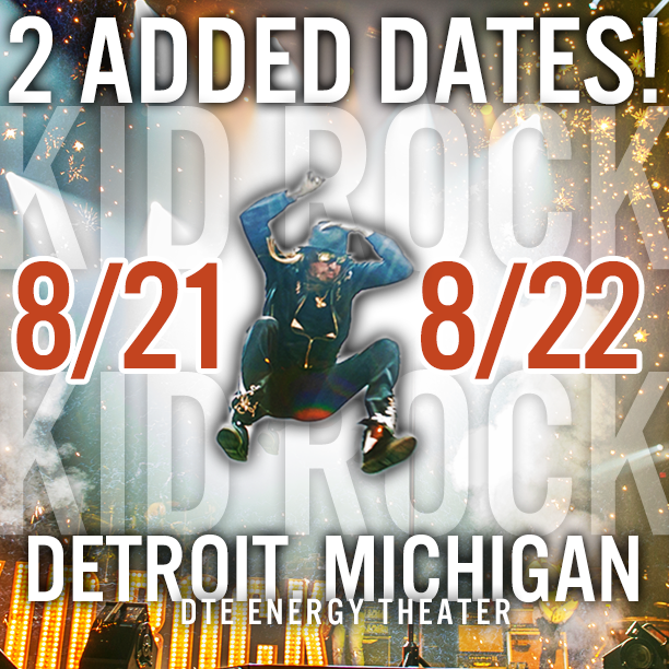 BREAKS RECORD FOR MOST CONSECUTIVE SHOWS AT DTE AND MOST TICKETS SOLD BY ONE ARTIST DURING CONCERT TOUR Due to overwhelming demand, Kid Rock is adding two more shows to his historic run of shows at the DTE Energy Music Theatre. The shows will take place on Friday, August 21st and Saturday, August 22nd, with tickets going on sale May 2nd at 10 am. These shows shatter previous ticket...