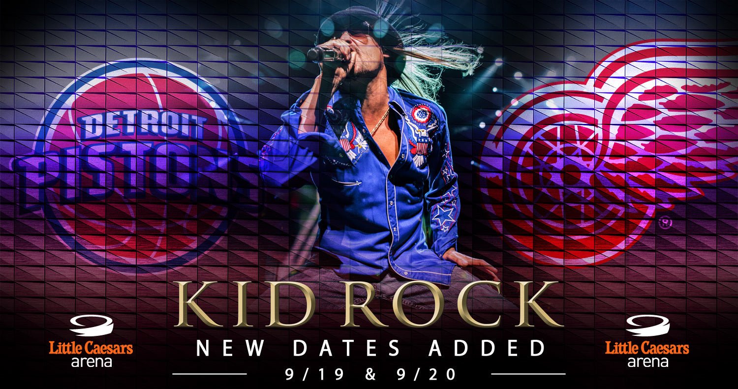 Due to overwhelming demand, Kid Rock is adding 2 final dates at Detroit's Little Caesars Arena on September 19th and 20th. Tickets for September 12th, 13th, 15th and 16th are on sale now. Tickets for September 19th and 20th will go on sale Thursday, February 2nd at 10:00am EST with a fan club pre-sale starting on Tuesday, January 31st at 10:00am EST. Tickets...