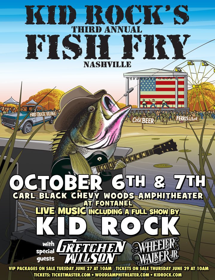 Kid Rock is once again throwing a huge backyard party in Nashville for friends and neighbors at his Third Annual Fish Fry at Carl Black Chevy Woods Amphitheater at Fontanel on Friday, October 6th and Saturday, October 7th. After two hugely successful sold out years this third edition promises to be the best yet. Each day will include a full set by Kid Rock, plus all the down home...